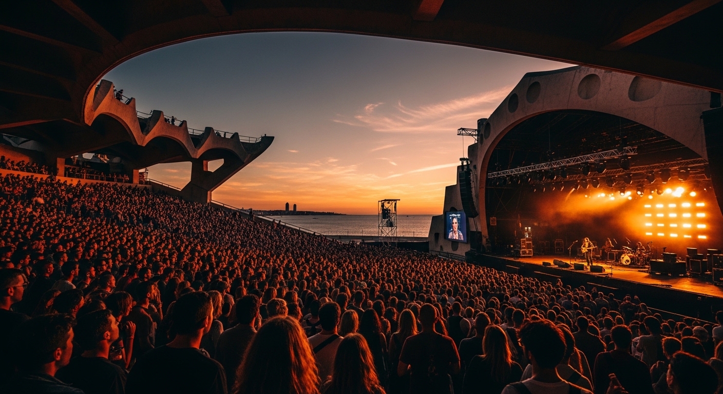 Parc del Fòrum расположен в северо-восточной части Барселоны, на побережье. До площадки удобно добираться по метро L4 до станции Maresme | Fòrum или трамваем T4. Это открытое пространство с видом на море, где одновременно работают несколько сцен. Планируйте время на перемещение между сценами и учитывайте, что вечером очереди на вход могут занимать 20–30 минут.